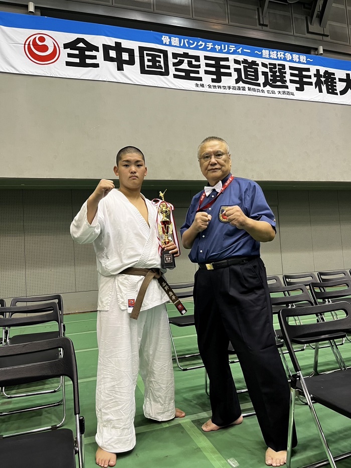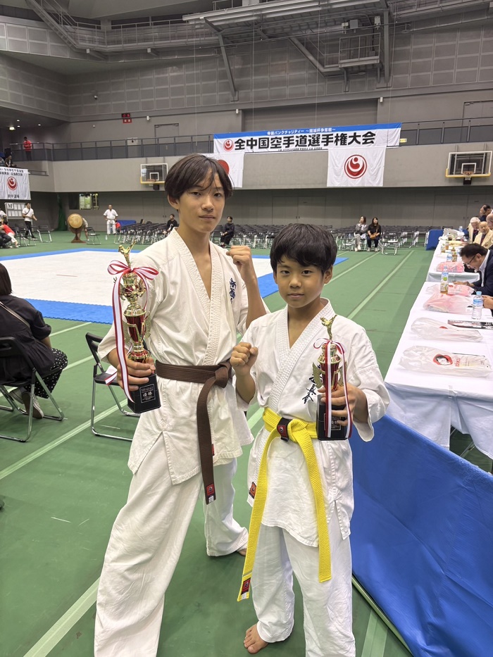 全中国空手道選手権大会 2025 9 28 中学2年 重量級 優勝 益野康平 中学一年 重量級 優勝 汐崎尋誠 小学五年生 軽重量級 準優勝 古川大翔 |