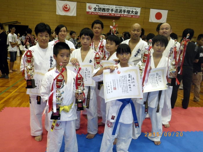 | 型団体 優勝 大阪北支部 中島綾汰 正岡実桜 八崎紀明 型個人 小1初級 優勝 前田麗亜 小1初級 3位 今冨孝太朗 小2初級 準優勝 住江輝昭 小2初級 3位 大中吏央 小4上級 優勝 中島綾汰 小4上級 準優勝 富岡桃花 中学生女子初級 優勝 中谷悠夏 中学生女子上級 優勝 正岡実桜 一般男子上級 優勝 古井敦士 シニア女子上級 優勝 林慶子 組手 幼年年長男子 優勝 大中比路 幼年年長女子 3位 真柄綸斗 小学1年男子初級 準優勝 今冨孝太朗 小学2年男子上級 優勝 益野康平 小学4年男子上級軽量級 準優勝 泉禎信 小学4年男子上級軽量級 3位 中島綾汰 小学4年女子上級軽量級 準優勝 真柄卯乃 小学6年女子初級 優勝 元井藍子 中学1年男子上級軽量級 優勝 住江秀昭 中学1年男子上級重量級 準優勝 森田智哉 中学1年女子上級軽量級 準優勝 笹部花香 中学2・3年男子上級軽量級 準優勝 大ア壮達 中学2・3年男子上級重量級 優勝 角田陽 中学2・3年女子上級軽量級 準優勝 正岡実桜 一般男子重量級 優勝 中島健心 シニア男子40歳以上50歳未満 初級 優勝 根岸謙太郎 シニア男子40歳以上50歳未満 上級重量級 準優勝 井口陽一郎 シニア男子40歳以上50歳未満 上級重量級 3位 植村誉夫 シニア女子40歳以上50歳未満 優勝 林慶子 シニア女子50歳以上60歳未満 優勝 川北美雪 シニア男子50歳以上60歳未満 上級 優勝 八崎紀明 |