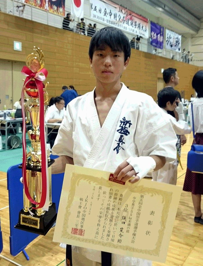 | 型 小学3・4年女子の部 3位 富岡桃花 中学女子部 優勝 正岡実桜 組手 幼年男子年長の部 優勝 大中比路 小学2年男子の部 準優勝 益野康平 小学6年男子上級の部 3位 角田大地 中学1年女子中量級の部 優勝 笹部花香 中学2・3年男子中量級の部 3位 角田陽 一般男子軽量級の部 優勝 森井翼 一般男子軽量級の部 準優勝 難波凌大 |